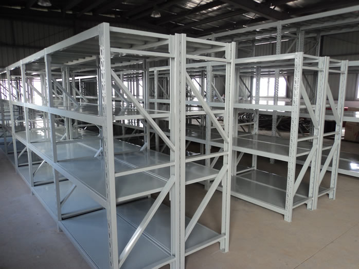 中型貨架,屬于倉儲貨架的一種,擱板貨架類型。是按貨架的承載量來區分..
